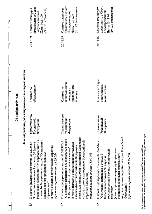 "О КАЛЕНДАРЕ РАССМОТРЕНИЯ ВОПРОСОВ ГОСУДАРСТВЕННОЙ ДУМОЙ С 3 ПО 20 НОЯБРЯ 2009 ГОДА"