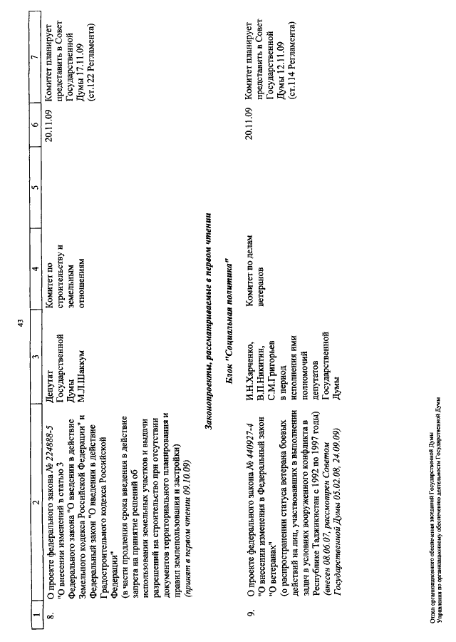 "О КАЛЕНДАРЕ РАССМОТРЕНИЯ ВОПРОСОВ ГОСУДАРСТВЕННОЙ ДУМОЙ С 3 ПО 20 НОЯБРЯ 2009 ГОДА"