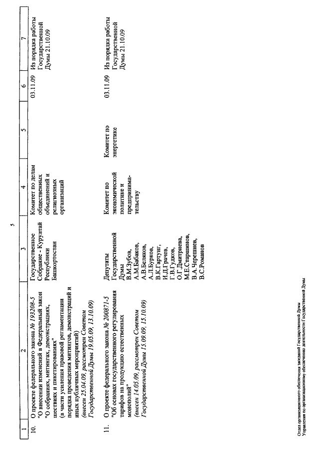 "О КАЛЕНДАРЕ РАССМОТРЕНИЯ ВОПРОСОВ ГОСУДАРСТВЕННОЙ ДУМОЙ С 3 ПО 20 НОЯБРЯ 2009 ГОДА"