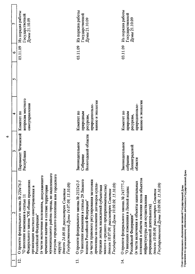 "О КАЛЕНДАРЕ РАССМОТРЕНИЯ ВОПРОСОВ ГОСУДАРСТВЕННОЙ ДУМОЙ С 3 ПО 20 НОЯБРЯ 2009 ГОДА"