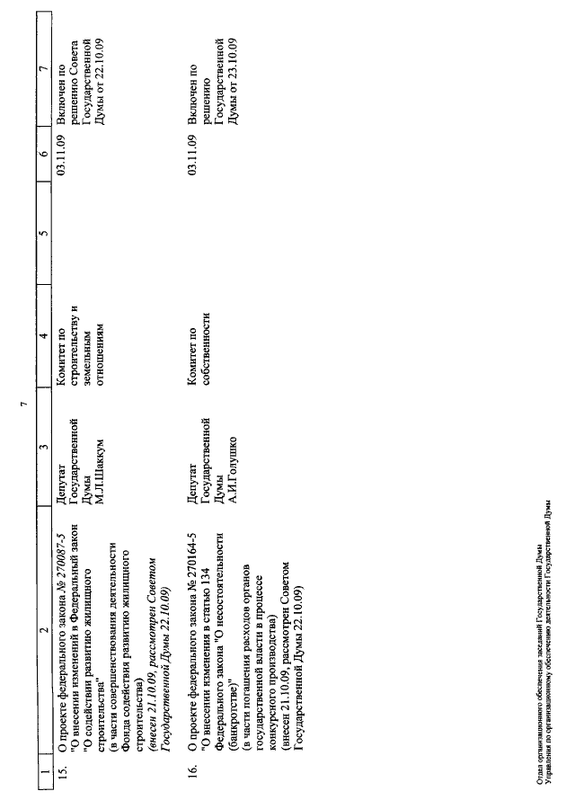 "О КАЛЕНДАРЕ РАССМОТРЕНИЯ ВОПРОСОВ ГОСУДАРСТВЕННОЙ ДУМОЙ С 3 ПО 20 НОЯБРЯ 2009 ГОДА"