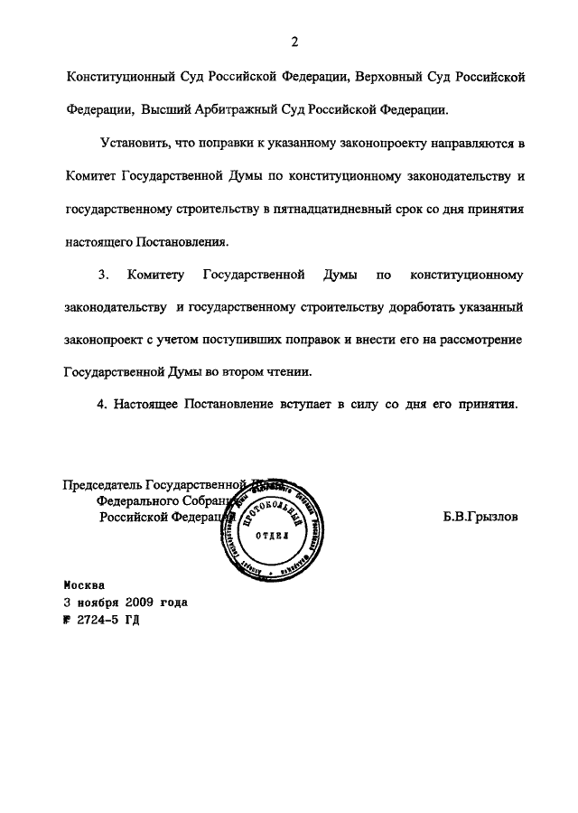 ПОСТАНОВЛЕНИЕ ГД ФС РФ от 03.11.2009 N 2724-5 ГД