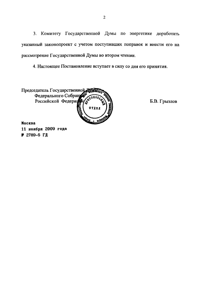 ПОСТАНОВЛЕНИЕ ГД ФС РФ от 11.11.2009 N 2789-5 ГД