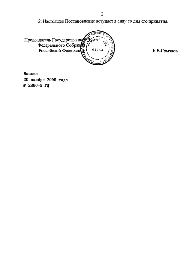 ПОСТАНОВЛЕНИЕ ГД ФС РФ от 20.11.2009 N 2860-5 ГД
