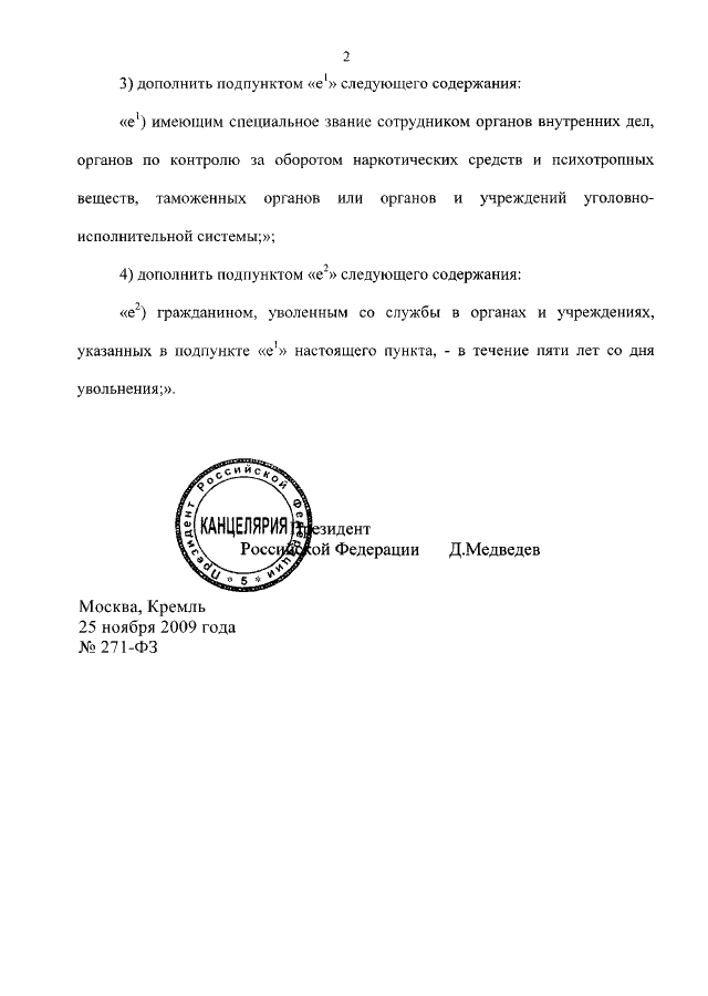 ФЕДЕРАЛЬНЫЙ ЗАКОН от 25.11.2009 N 271-ФЗ