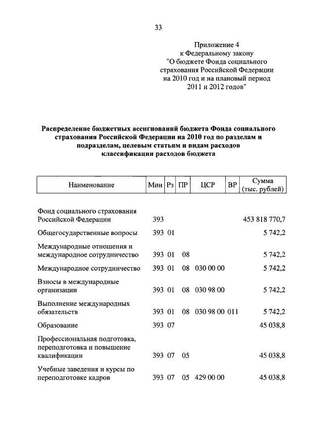 "О БЮДЖЕТЕ ФОНДА СОЦИАЛЬНОГО СТРАХОВАНИЯ РОССИЙСКОЙ ФЕДЕРАЦИИ НА 2010 ГОД И НА ПЛАНОВЫЙ ПЕРИОД 2011 И 2012 ГОДОВ"