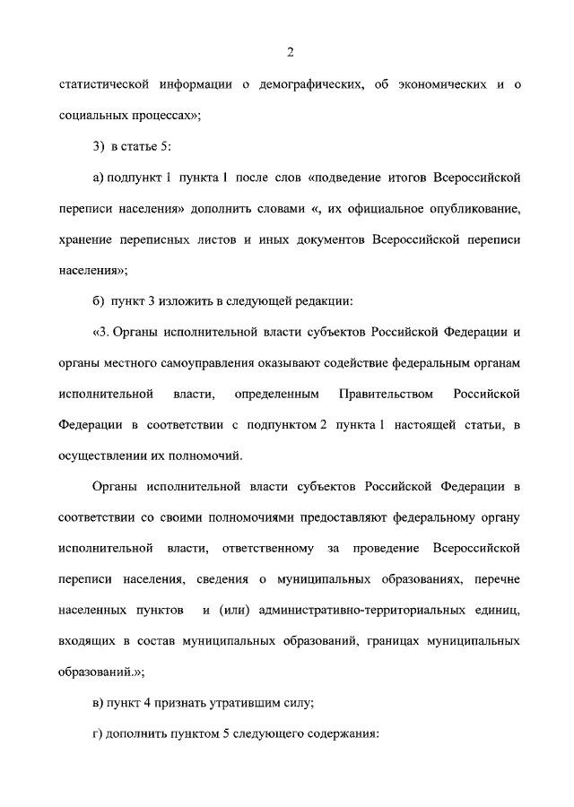 "О ВНЕСЕНИИ ИЗМЕНЕНИЙ В ФЕДЕРАЛЬНЫЙ ЗАКОН "О ВСЕРОССИЙСКОЙ ПЕРЕПИСИ НАСЕЛЕНИЯ"
