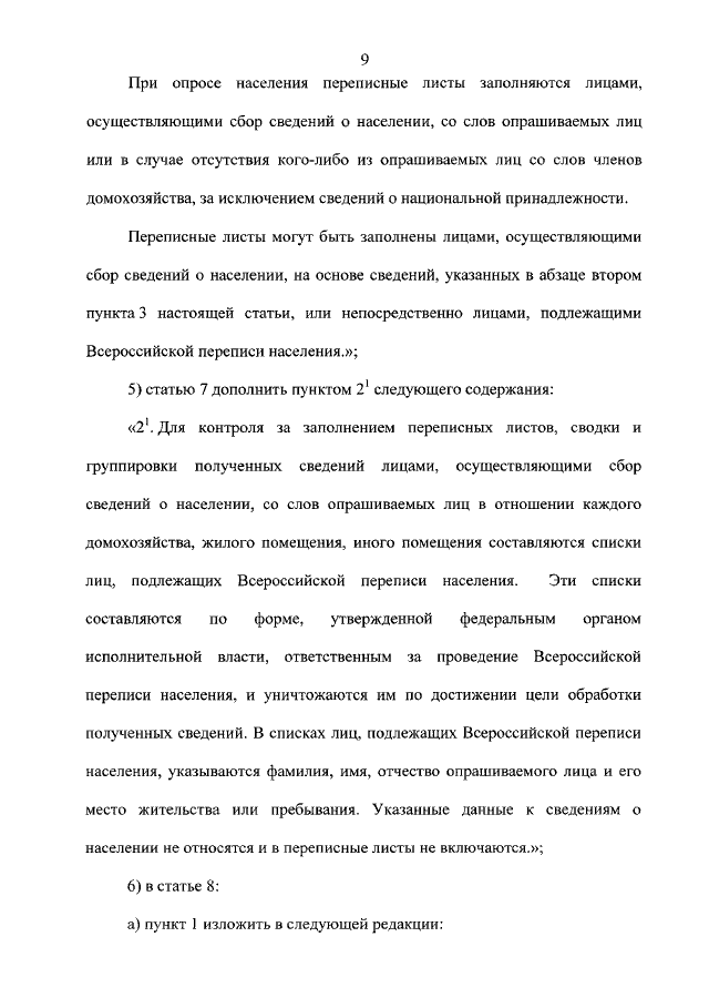 "О ВНЕСЕНИИ ИЗМЕНЕНИЙ В ФЕДЕРАЛЬНЫЙ ЗАКОН "О ВСЕРОССИЙСКОЙ ПЕРЕПИСИ НАСЕЛЕНИЯ"