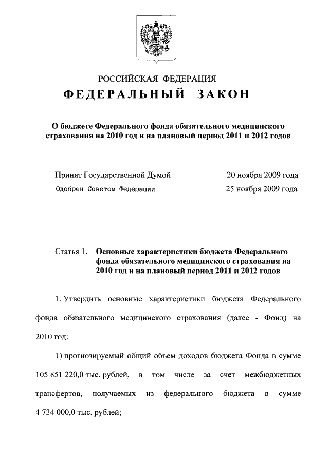 "О БЮДЖЕТЕ ФЕДЕРАЛЬНОГО ФОНДА ОБЯЗАТЕЛЬНОГО МЕДИЦИНСКОГО СТРАХОВАНИЯ НА 2010 ГОД И НА ПЛАНОВЫЙ ПЕРИОД 2011 И 2012 ГОДОВ"