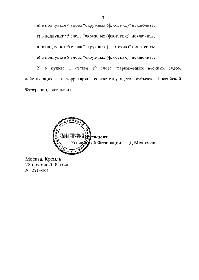 ФЕДЕРАЛЬНЫЙ ЗАКОН от 28.11.2009 N 296-ФЗ