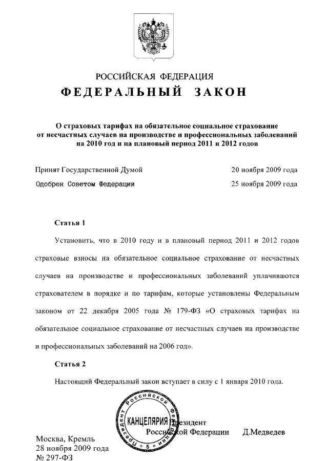 ФЕДЕРАЛЬНЫЙ ЗАКОН от 28.11.2009 N 297-ФЗ