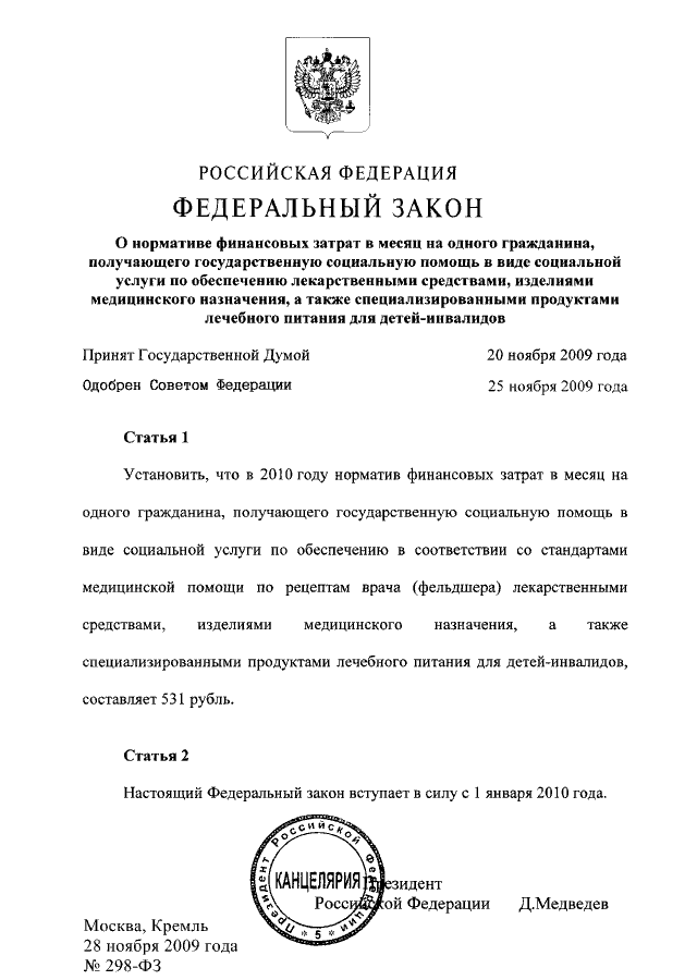 ФЕДЕРАЛЬНЫЙ ЗАКОН от 28.11.2009 N 298-ФЗ