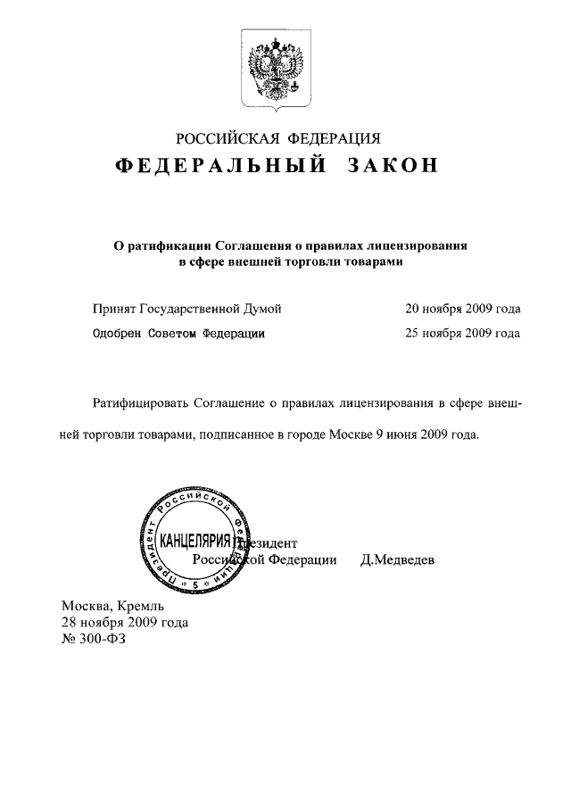 ФЕДЕРАЛЬНЫЙ ЗАКОН от 28.11.2009 N 300-ФЗ