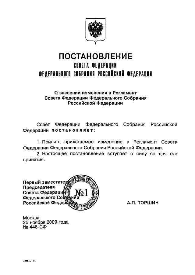 ПОСТАНОВЛЕНИЕ СФ ФС РФ от 25.11.2009 N 448-СФ