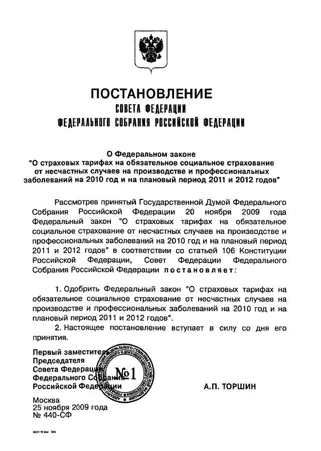 ПОСТАНОВЛЕНИЕ СФ ФС РФ от 25.11.2009 N 440-СФ