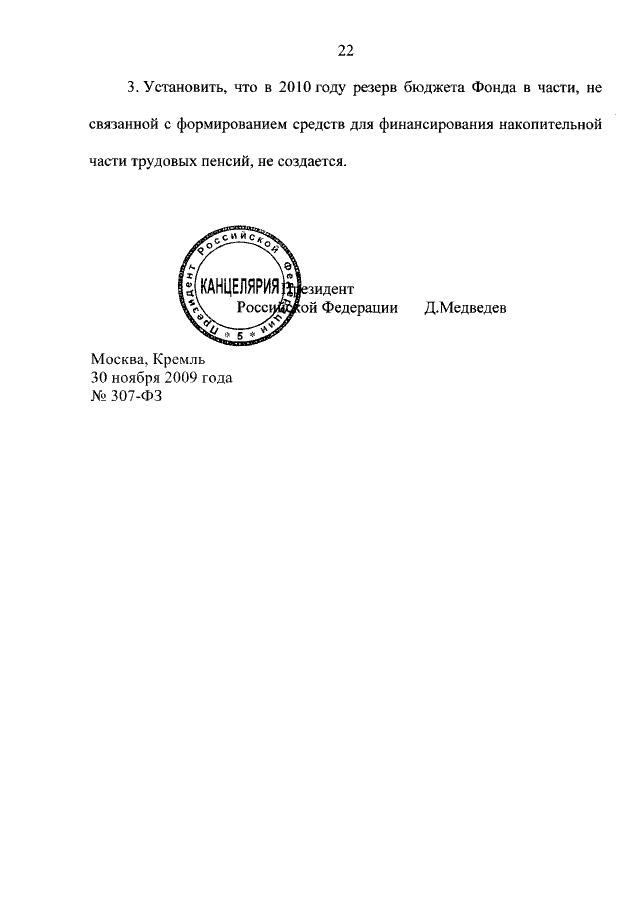 ФЕДЕРАЛЬНЫЙ ЗАКОН от 30.11.2009 N 307-ФЗ