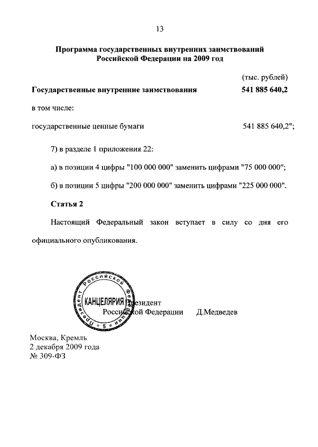 ФЕДЕРАЛЬНЫЙ ЗАКОН от 02.12.2009 N 309-ФЗ