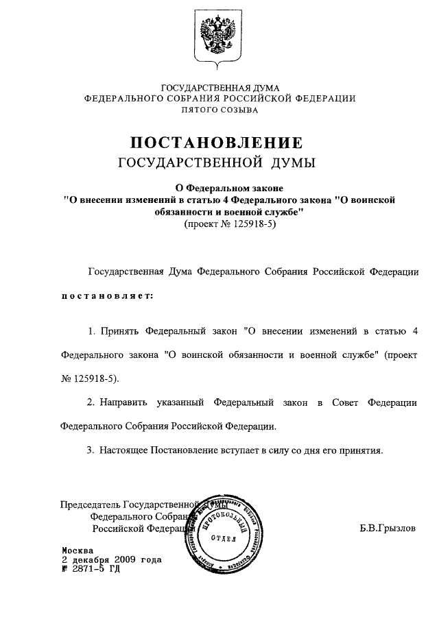 ПОСТАНОВЛЕНИЕ ГД ФС РФ от 02.12.2009 N 2871-5 ГД
