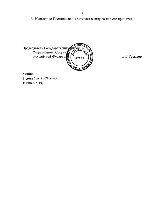 ПОСТАНОВЛЕНИЕ ГД ФС РФ от 02.12.2009 N 2869-5 ГД