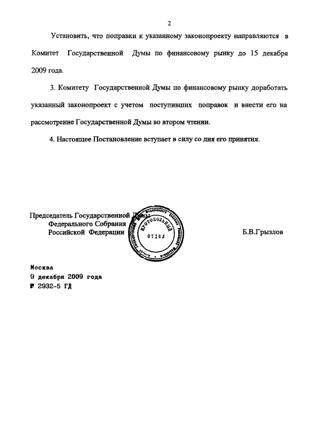 ПОСТАНОВЛЕНИЕ ГД ФС РФ от 09.12.2009 N 2932-5 ГД
