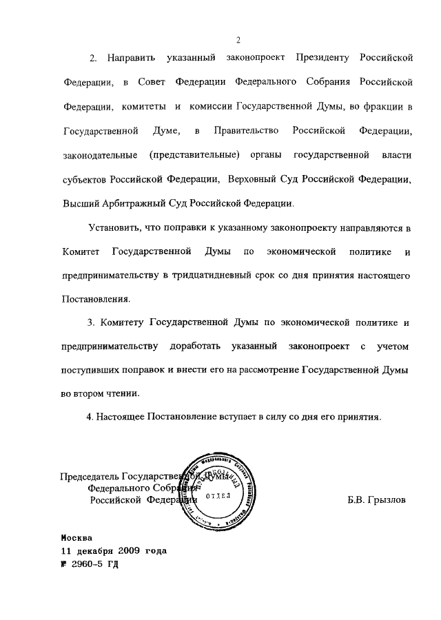 ПОСТАНОВЛЕНИЕ ГД ФС РФ от 11.12.2009 N 2960-5 ГД