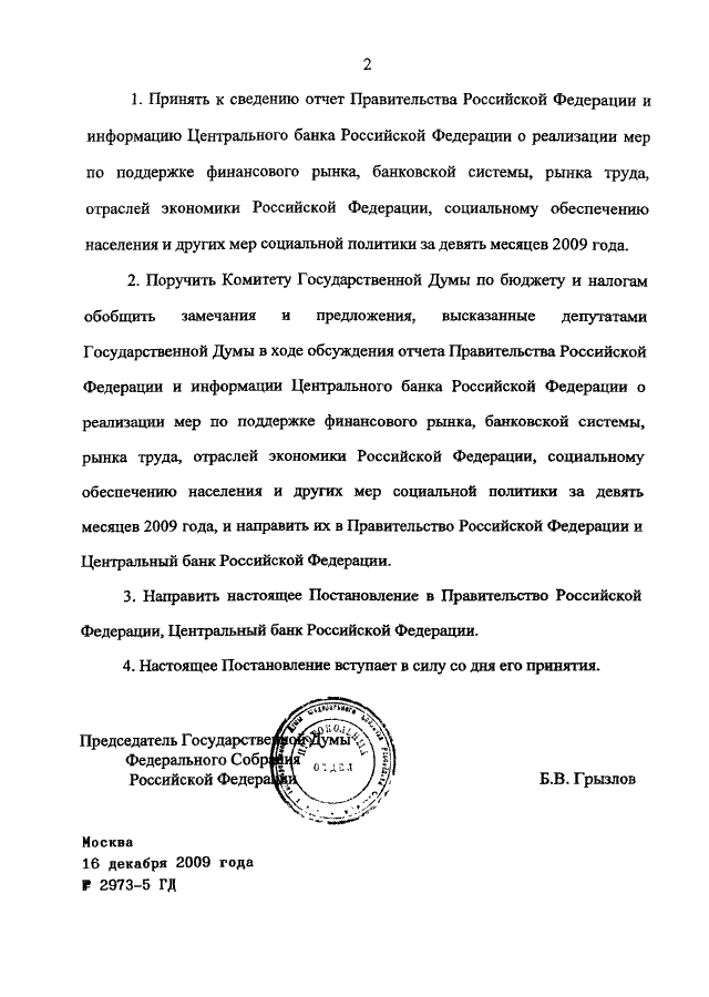 ПОСТАНОВЛЕНИЕ ГД ФС РФ от 16.12.2009 N 2973-5 ГД