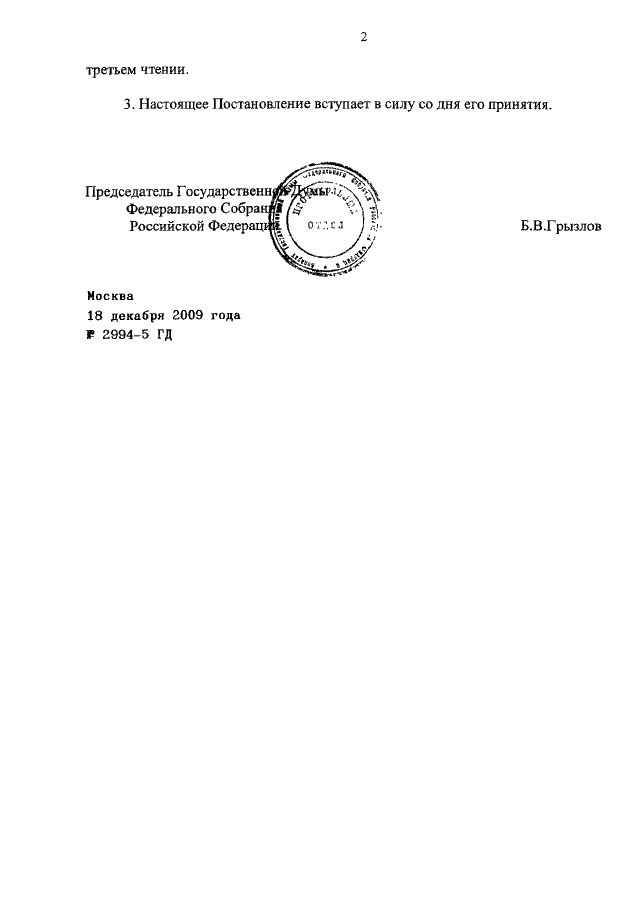 ПОСТАНОВЛЕНИЕ ГД ФС РФ от 18.12.2009 N 2994-5 ГД