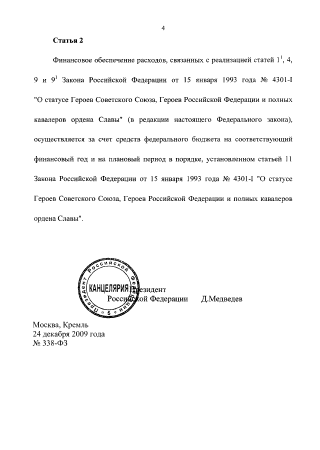 ФЕДЕРАЛЬНЫЙ ЗАКОН от 24.12.2009 N 338-ФЗ