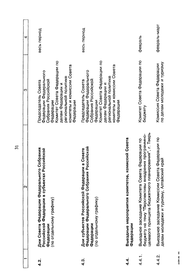 "О ПЛАНЕ МЕРОПРИЯТИЙ И МОНИТОРИНГА ПРАВОВОГО ПРОСТРАНСТВА И ПРАВОПРИМЕНИТЕЛЬНОЙ ПРАКТИКИ, ПРОВОДИМЫХ СОВЕТОМ ФЕДЕРАЦИИ ФЕДЕРАЛЬНОГО СОБРАНИЯ РОССИЙСКОЙ ФЕДЕРАЦИИ, НА ВЕСЕННЮЮ СЕССИЮ 2010 ГОДА"