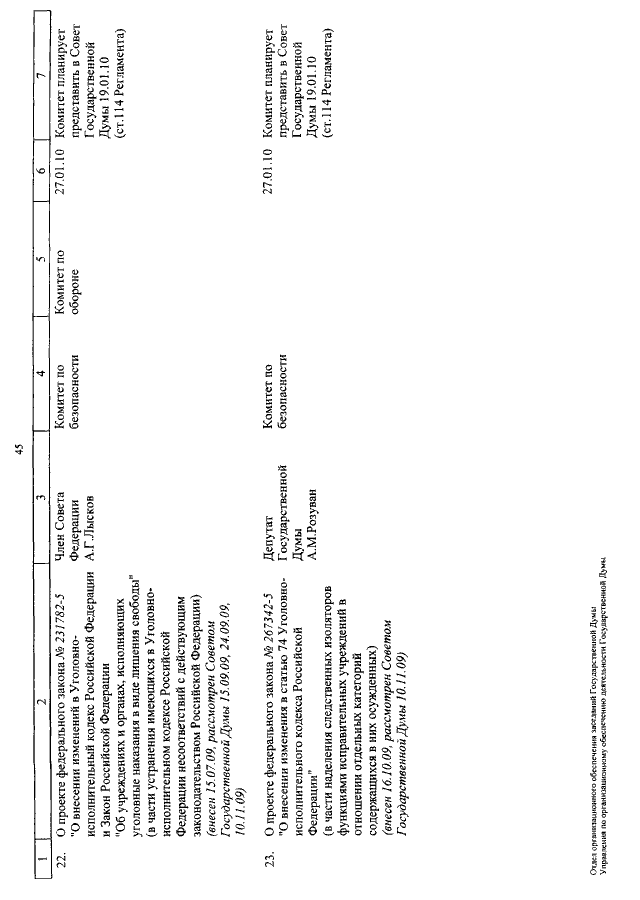 "О КАЛЕНДАРЕ РАССМОТРЕНИЯ ВОПРОСОВ ГОСУДАРСТВЕННОЙ ДУМОЙ С 13 ПО 29 ЯНВАРЯ 2010 ГОДА"