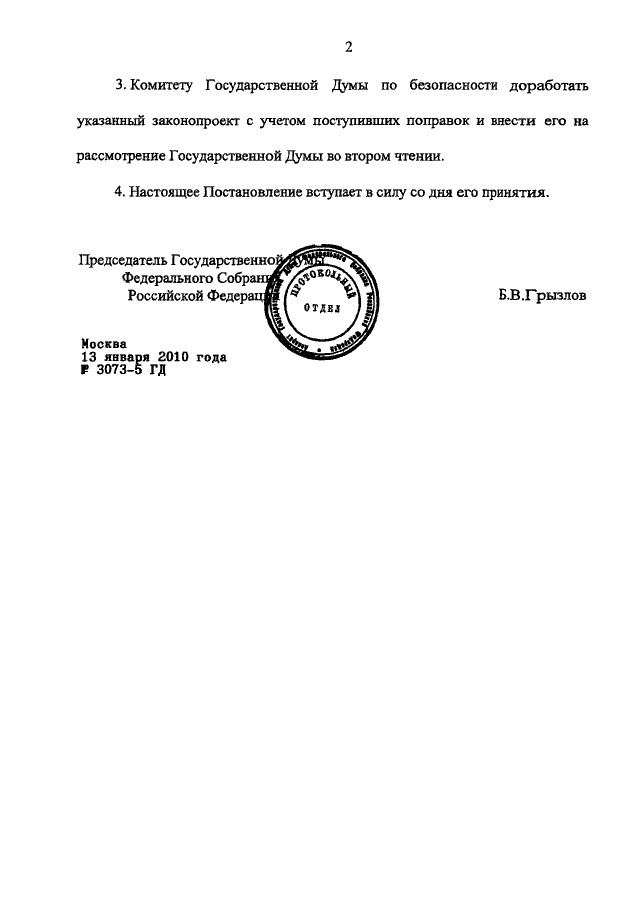ПОСТАНОВЛЕНИЕ ГД ФС РФ от 13.01.2010 N 3073-5 ГД