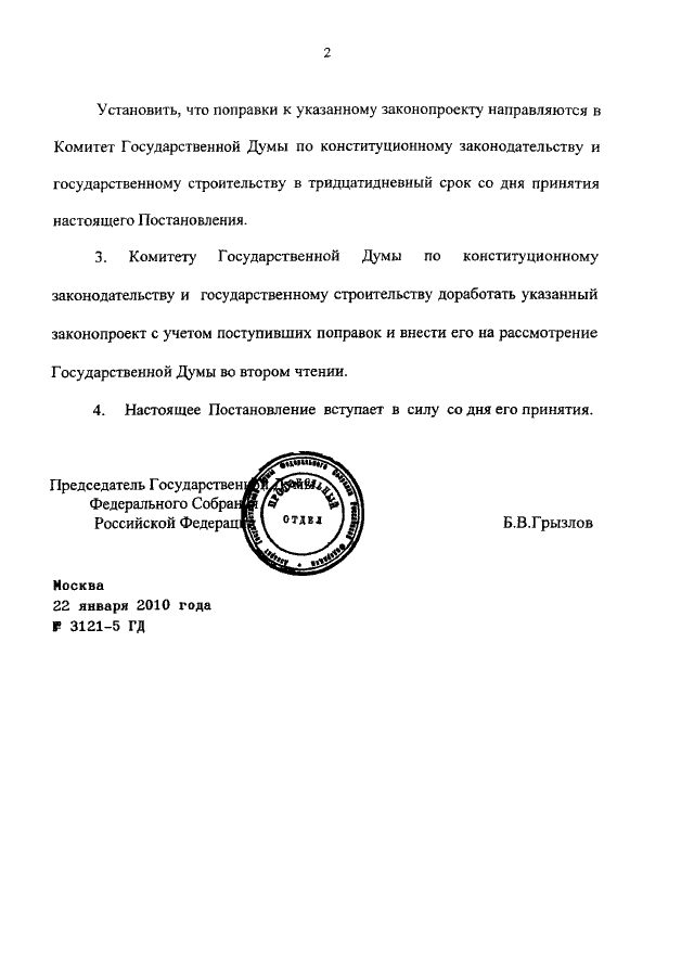 ПОСТАНОВЛЕНИЕ ГД ФС РФ от 22.01.2010 N 3121-5 ГД