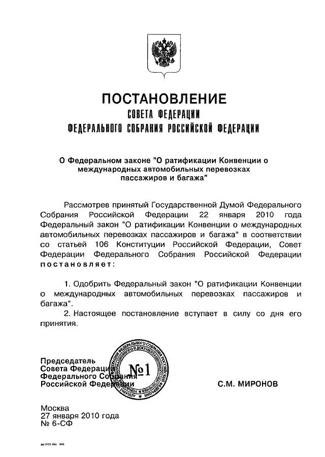 ПОСТАНОВЛЕНИЕ СФ ФС РФ от 27.01.2010 N 6-СФ
