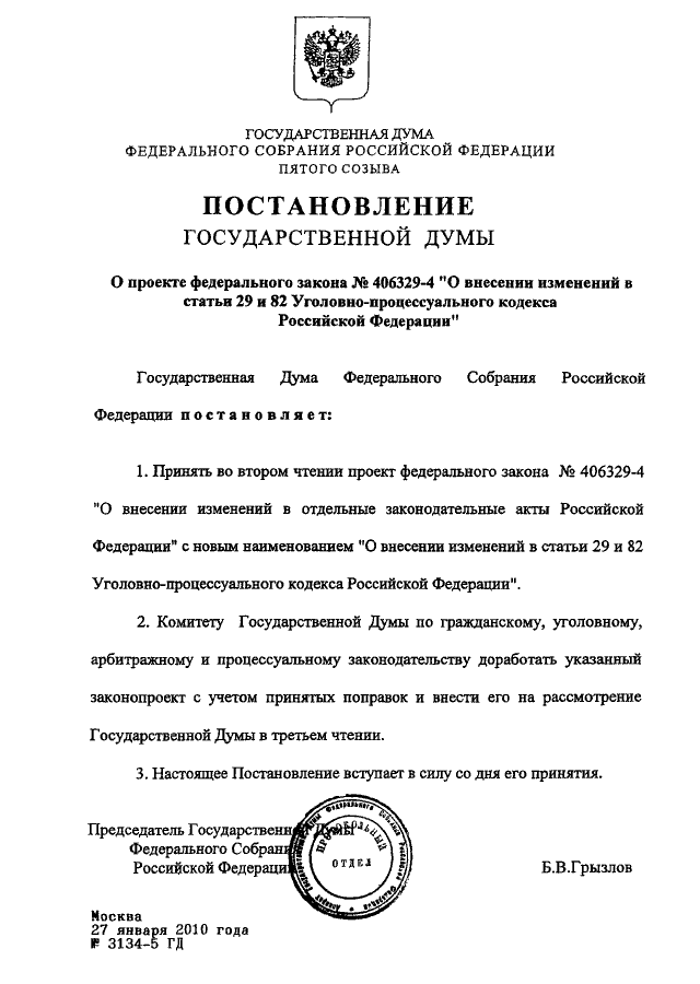 ПОСТАНОВЛЕНИЕ ГД ФС РФ от 27.01.2010 N 3134-5 ГД