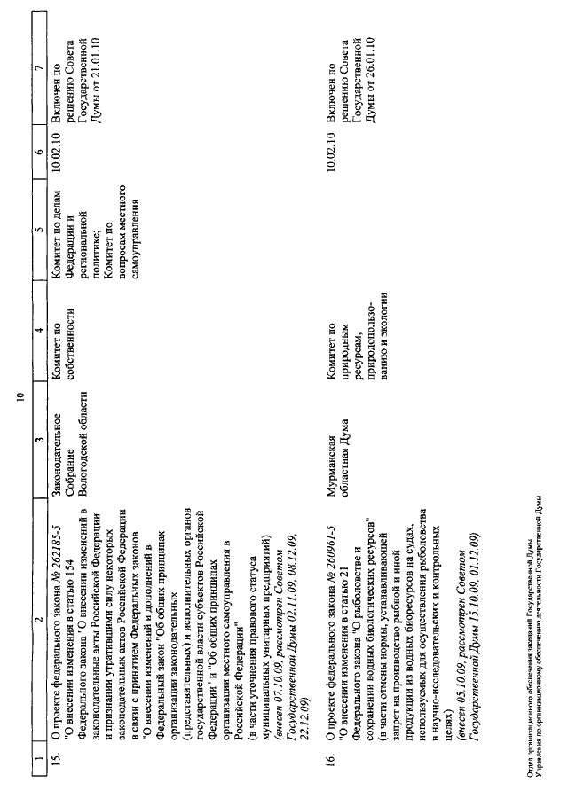"О КАЛЕНДАРЕ РАССМОТРЕНИЯ ВОПРОСОВ ГОСУДАРСТВЕННОЙ ДУМОЙ С 10 ПО 26 ФЕВРАЛЯ 2010 ГОДА"