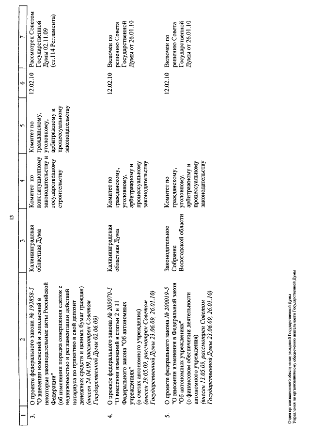 "О КАЛЕНДАРЕ РАССМОТРЕНИЯ ВОПРОСОВ ГОСУДАРСТВЕННОЙ ДУМОЙ С 10 ПО 26 ФЕВРАЛЯ 2010 ГОДА"