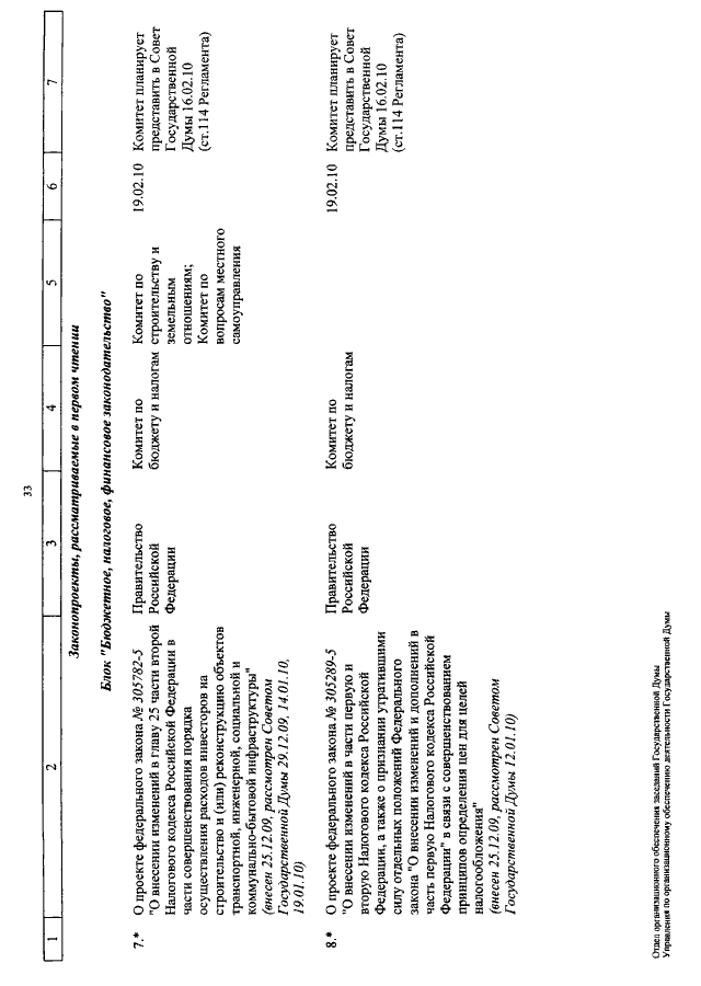 "О КАЛЕНДАРЕ РАССМОТРЕНИЯ ВОПРОСОВ ГОСУДАРСТВЕННОЙ ДУМОЙ С 10 ПО 26 ФЕВРАЛЯ 2010 ГОДА"