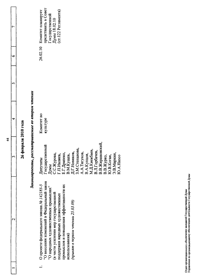 "О КАЛЕНДАРЕ РАССМОТРЕНИЯ ВОПРОСОВ ГОСУДАРСТВЕННОЙ ДУМОЙ С 10 ПО 26 ФЕВРАЛЯ 2010 ГОДА"