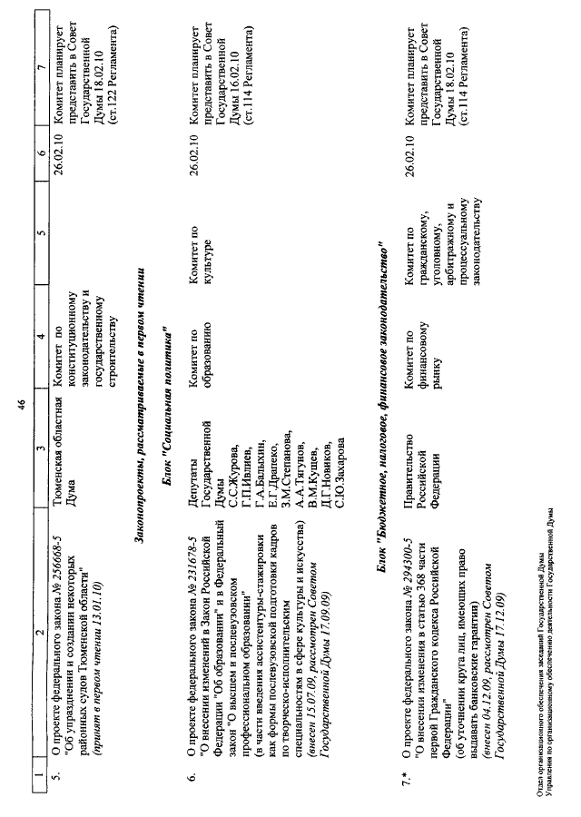 "О КАЛЕНДАРЕ РАССМОТРЕНИЯ ВОПРОСОВ ГОСУДАРСТВЕННОЙ ДУМОЙ С 10 ПО 26 ФЕВРАЛЯ 2010 ГОДА"