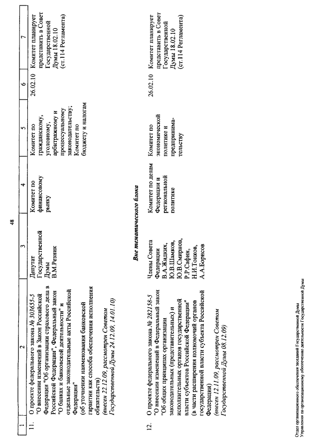 "О КАЛЕНДАРЕ РАССМОТРЕНИЯ ВОПРОСОВ ГОСУДАРСТВЕННОЙ ДУМОЙ С 10 ПО 26 ФЕВРАЛЯ 2010 ГОДА"