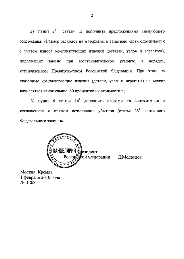 ФЕДЕРАЛЬНЫЙ ЗАКОН от 01.02.2010 N 3-ФЗ