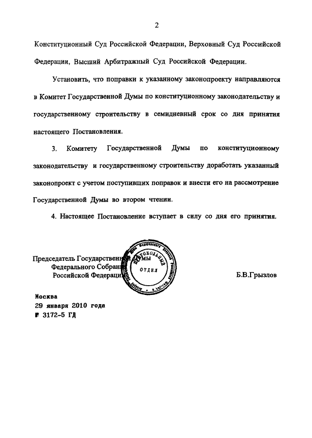 ПОСТАНОВЛЕНИЕ ГД ФС РФ от 29.01.2010 N 3172-5 ГД