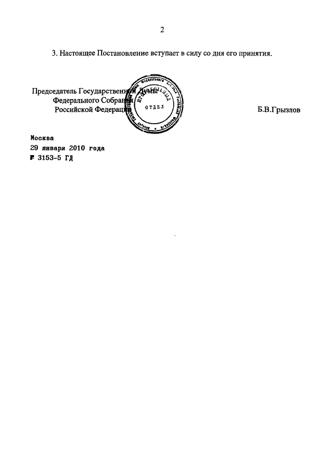 ПОСТАНОВЛЕНИЕ ГД ФС РФ от 29.01.2010 N 3153-5 ГД