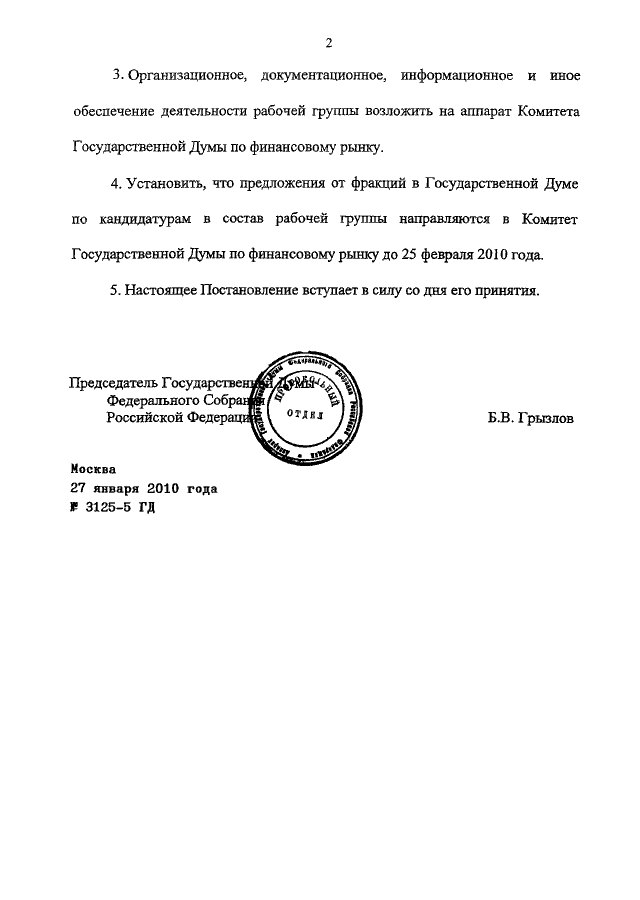 ПОСТАНОВЛЕНИЕ ГД ФС РФ от 27.01.2010 N 3125-5 ГД