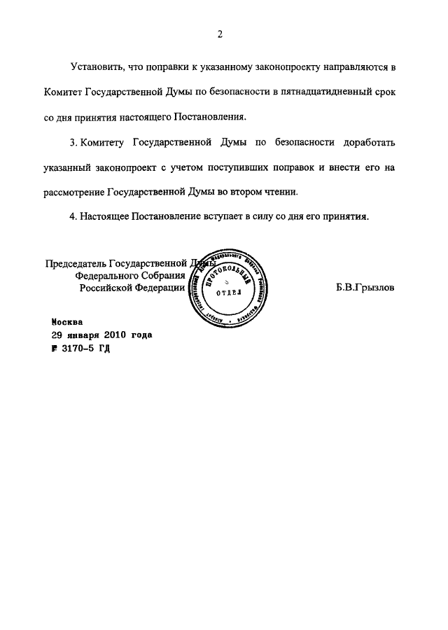 ПОСТАНОВЛЕНИЕ ГД ФС РФ от 29.01.2010 N 3170-5 ГД