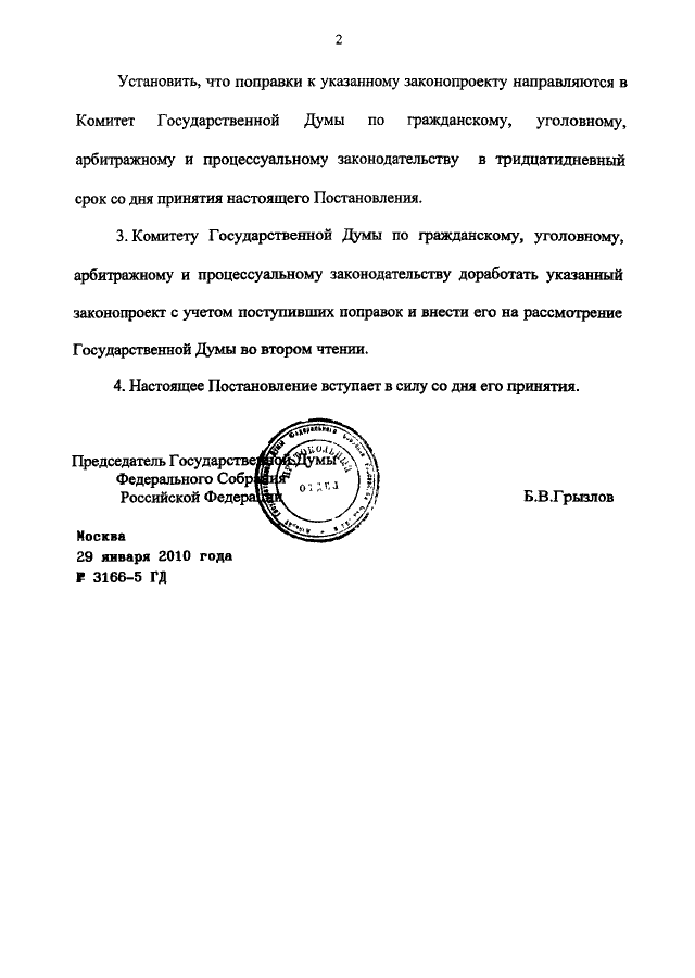 ПОСТАНОВЛЕНИЕ ГД ФС РФ от 29.01.2010 N 3166-5 ГД