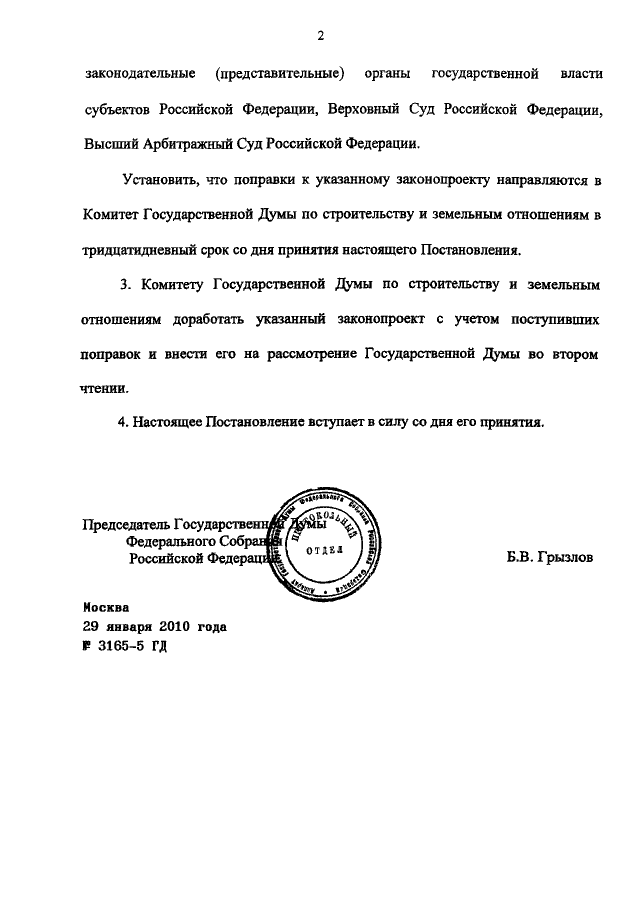 ПОСТАНОВЛЕНИЕ ГД ФС РФ от 29.01.2010 N 3165-5 ГД