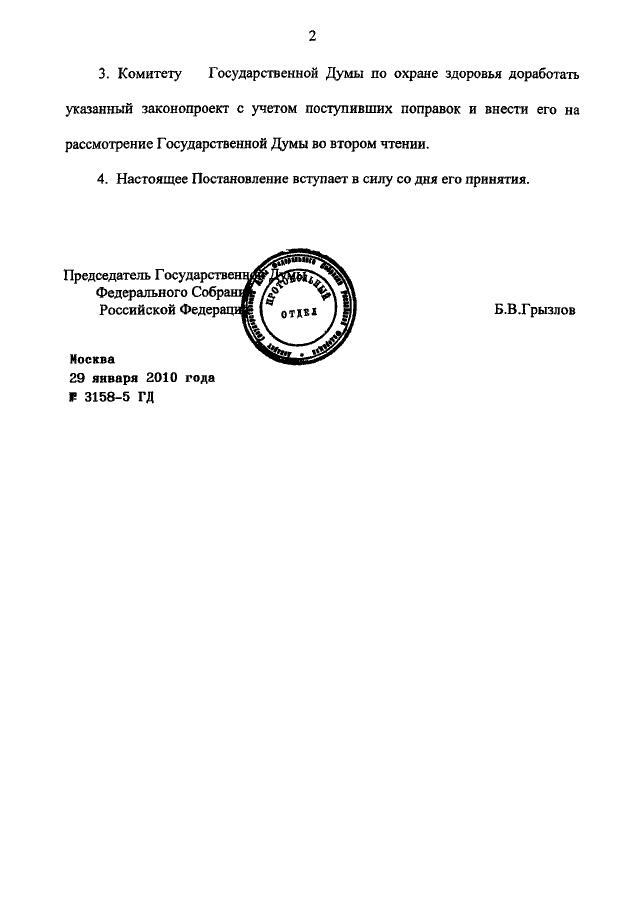 ПОСТАНОВЛЕНИЕ ГД ФС РФ от 29.01.2010 N 3158-5 ГД