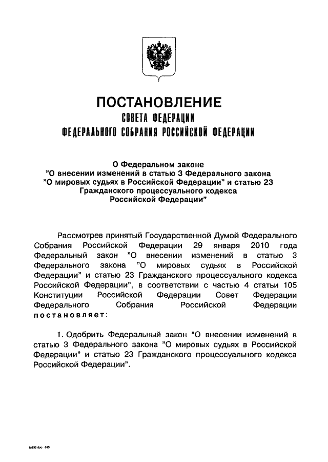 "О ФЕДЕРАЛЬНОМ ЗАКОНЕ "О ВНЕСЕНИИ ИЗМЕНЕНИЙ В СТАТЬЮ 3 ФЕДЕРАЛЬНОГО ЗАКОНА "О МИРОВЫХ СУДЬЯХ В РОССИЙСКОЙ ФЕДЕРАЦИИ" И СТАТЬЮ 23 ГРАЖДАНСКОГО ПРОЦЕССУАЛЬНОГО КОДЕКСА РОССИЙСКОЙ ФЕДЕРАЦИИ"