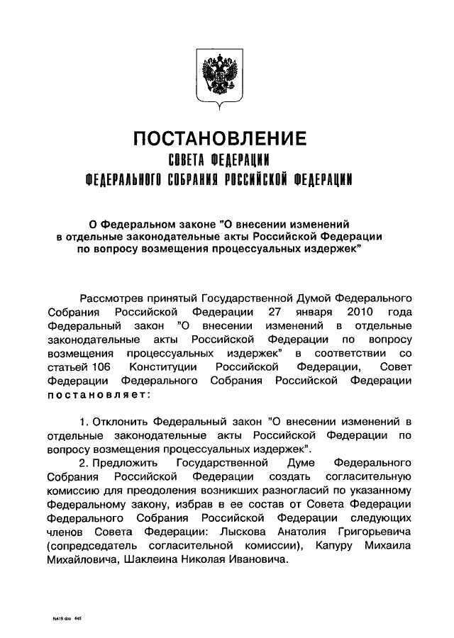 ПОСТАНОВЛЕНИЕ СФ ФС РФ от 03.02.2010 N 19-СФ